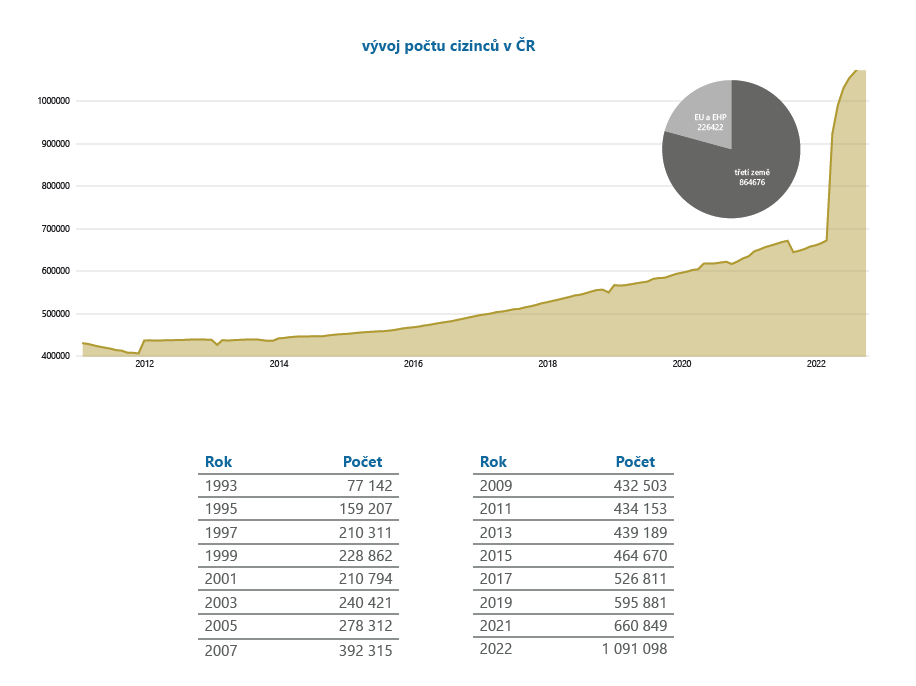 Development of the number of foreigners in the Czech Republic (as of 30 September 2022)
