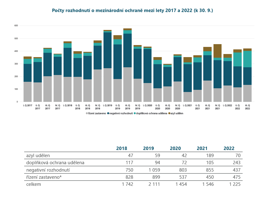 Number of international protection decisions between 2017 and 2022 (as of 30 September 2022)